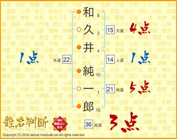 和久井純一郎さんの天運は15画の4点!