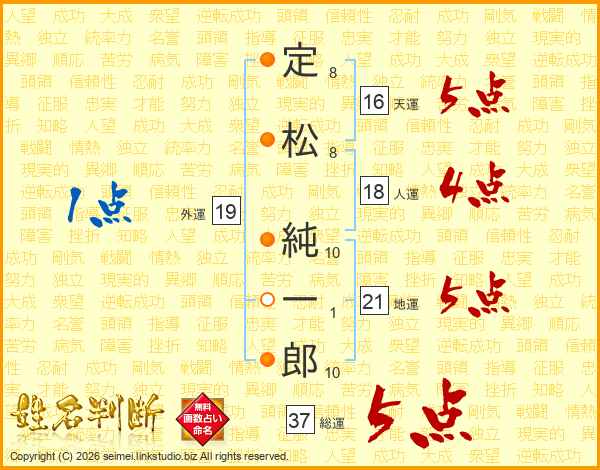 定松純一郎さんの総運は37画の5点!