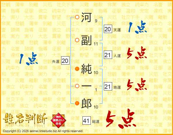 河(9画)副(11画) 純(10画)一(1画)郎(10画)