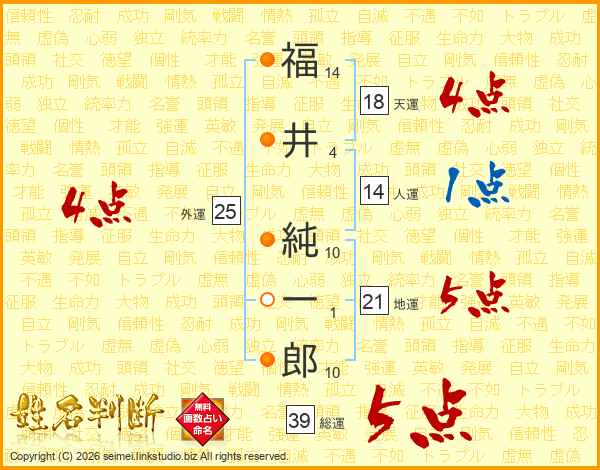 福井純一郎さんの総運は39画の5点!