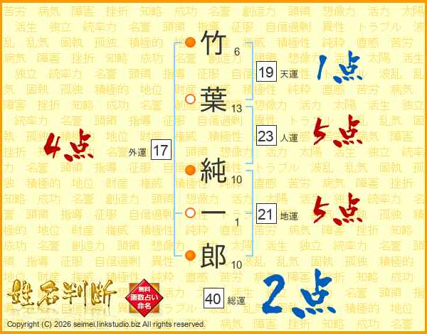 竹葉純一郎さんの総運は40画の2点!
