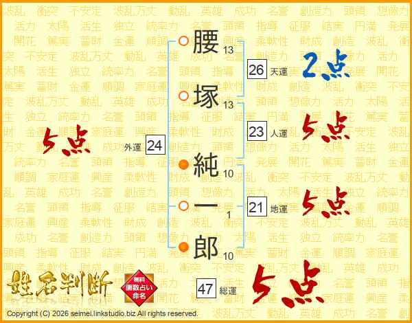腰塚純一郎さんの総運は47画の5点!