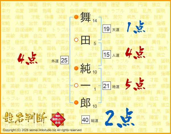 舞田純一郎さんの人運は15画の4点!