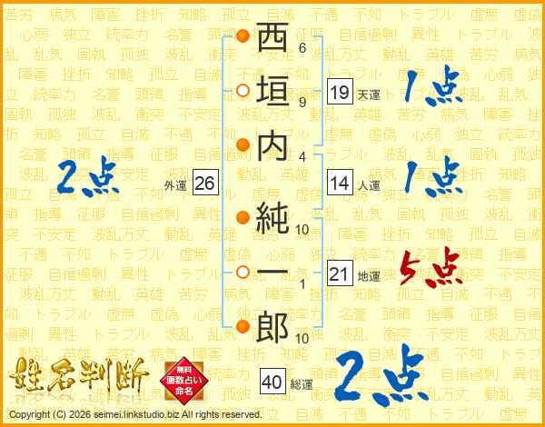 西垣内純一郎さんの天運は19画の1点!