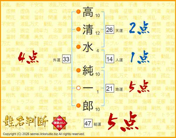 高清水純一郎さんの総運は47画の5点!