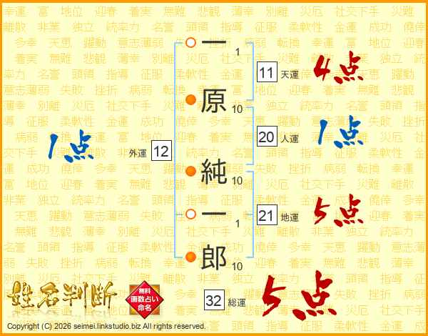 一原純一郎さんの総運は32画の5点!