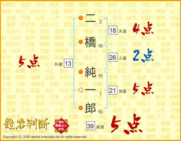 二橋純一郎さんの総運は39画の5点!