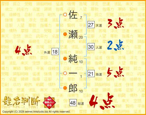 佐瀬純一郎さんの総運は48画の4点!