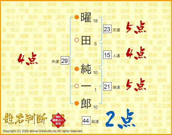 曜田純一郎さんの総運は44画の2点!
