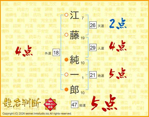 江藤純一郎さんの総運は47画の5点!