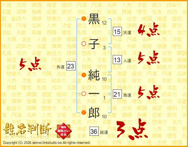 黒子純一郎さんの総運は36画の3点!