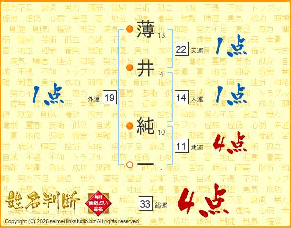 薄井純一さんの総運は33画の4点!