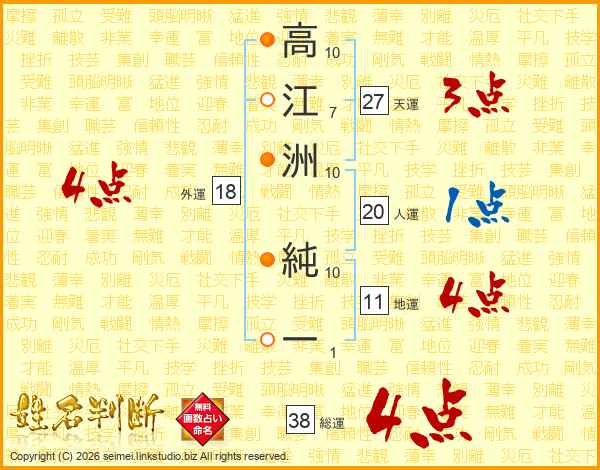 高(10画)江(7画)洲(10画) 純(10画)一(1画)