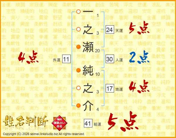一(1画)之(3画)瀬(20画) 純(10画)之(3画)介(4画)