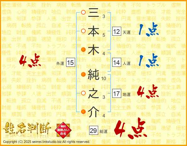 三(3画)本(5画)木(4画) 純(10画)之(3画)介(4画)