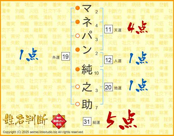 マネパン純之助さんの総運は31画の5点!