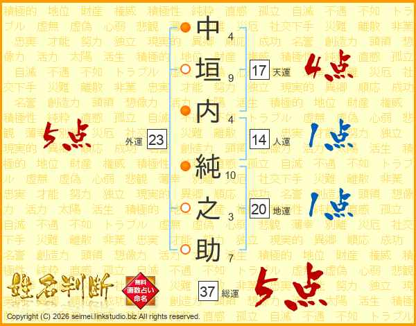 中垣内純之助さんの総運は37画の5点!