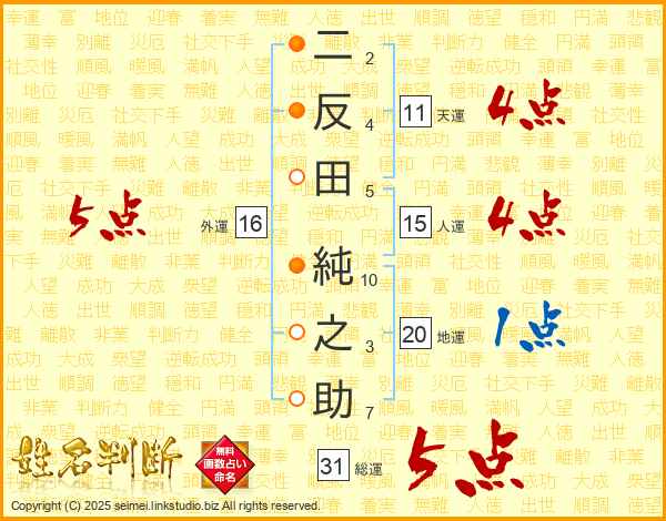 二(2画)反(4画)田(5画) 純(10画)之(3画)助(7画)