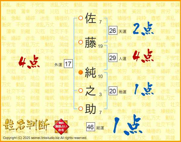 佐(7画)藤(19画) 純(10画)之(3画)助(7画)