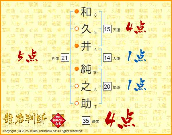和久井純之助さんの総運は35画の4点!