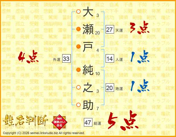 大瀬戸純之助さんの総運は47画の5点!