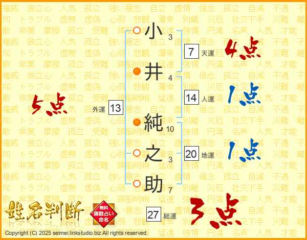 小(3画)井(4画) 純(10画)之(3画)助(7画)