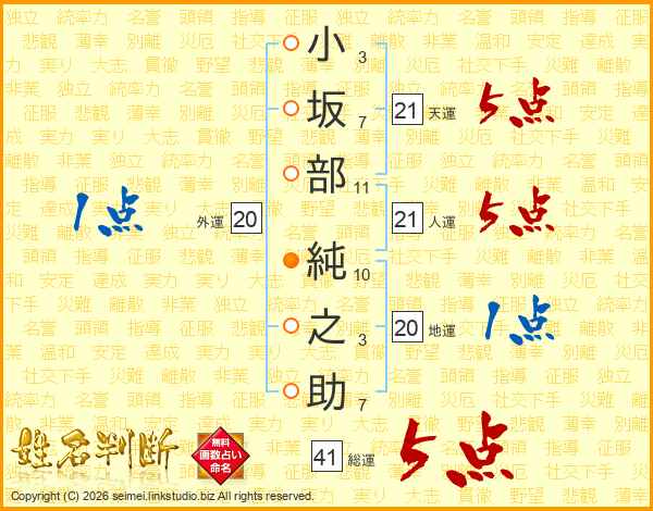 小坂部純之助さんの総運は41画の5点!