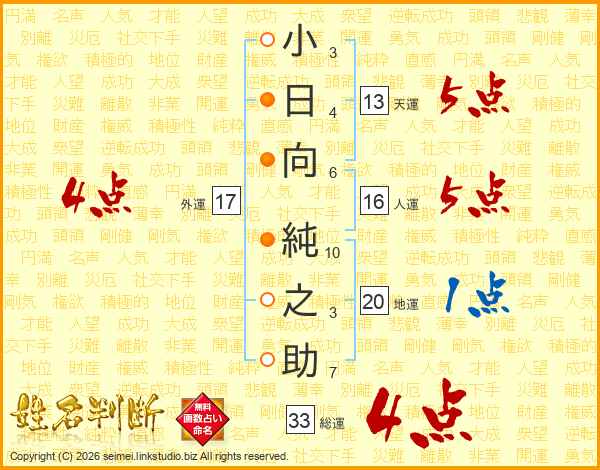 小日向純之助さんの総運は33画の4点!