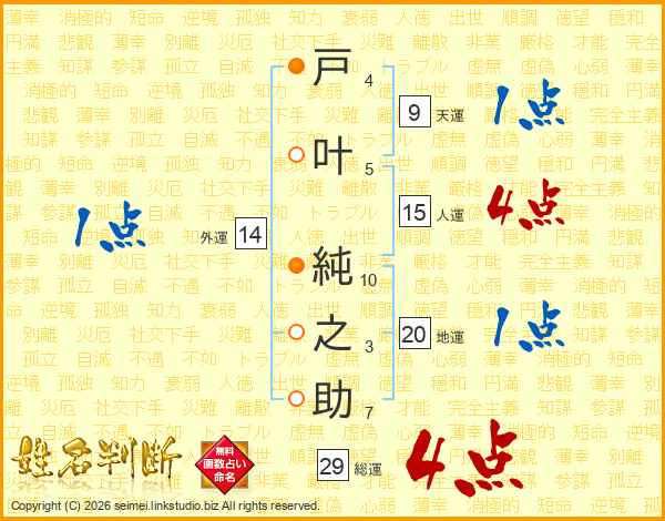 戸(4画)叶(5画) 純(10画)之(3画)助(7画)