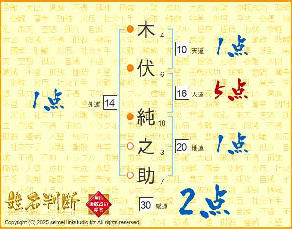 木(4画)伏(6画) 純(10画)之(3画)助(7画)