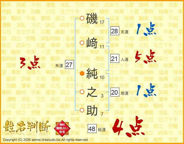 磯(17画)﨑(11画) 純(10画)之(3画)助(7画)