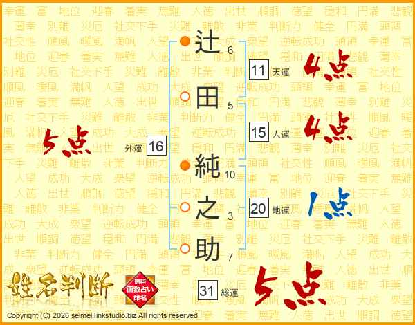 辻田純之助さんの外運は16画の5点!