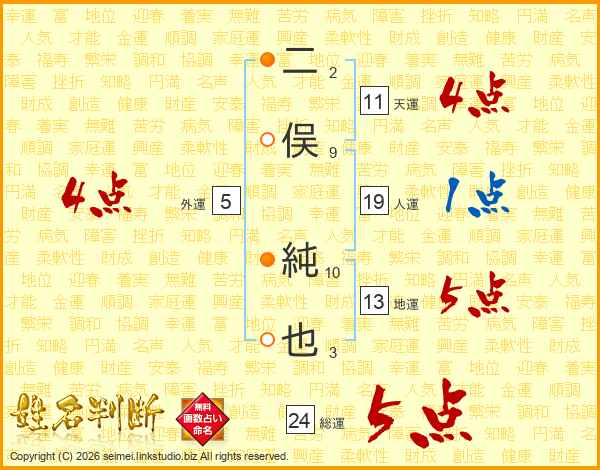 二俣純也さんの総運は24画の5点!