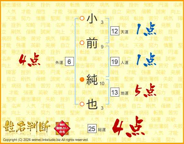 小前純也さんの総運は25画の4点!