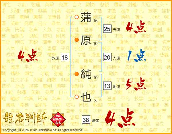 蒲原純也さんの総運は38画の4点!