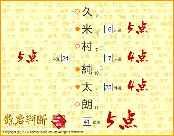 久米村純太朗さんの地運は25画の4点!