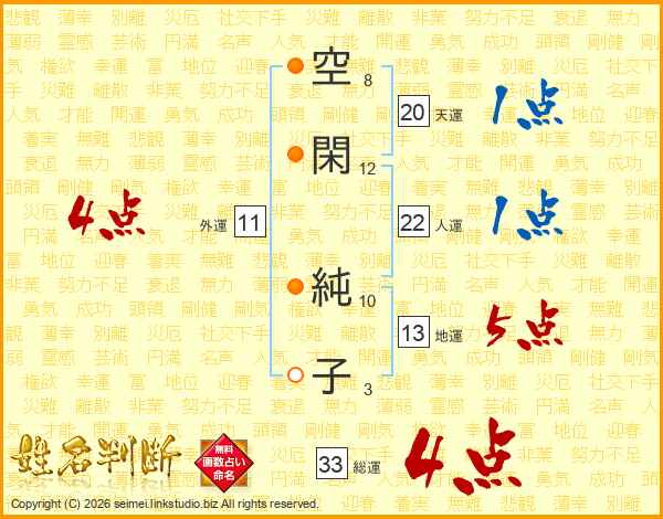 空閑純子さんの総運は33画の4点!