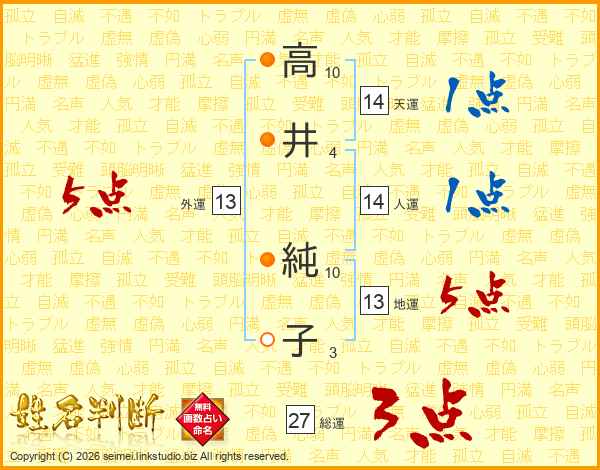 高(10画)井(4画) 純(10画)子(3画)