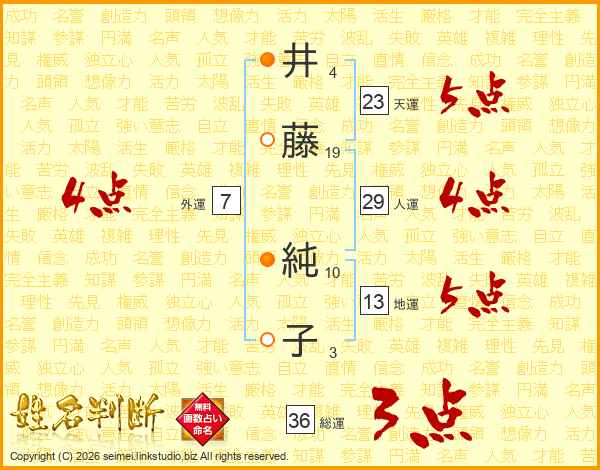 井(4画)藤(19画)  純(10画)子(3画)