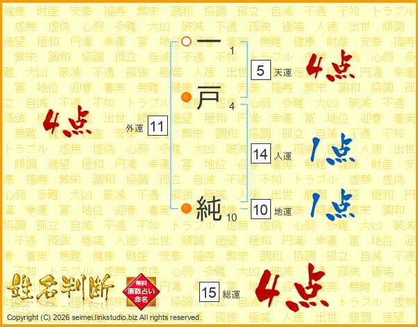 一戸純さんの総運は15画の4点!