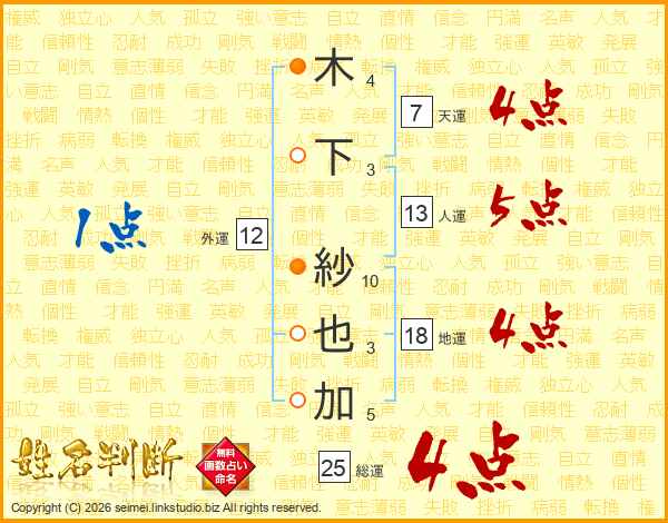 木下紗也加さんの総運は25画の4点!