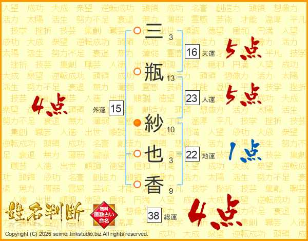三瓶紗也香さんの総運は38画の4点!