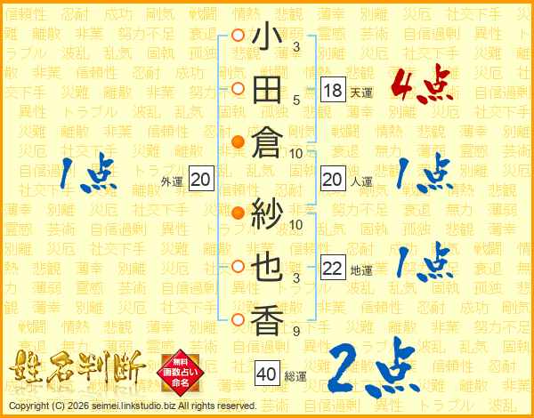 小田倉紗也香さんの総運は40画の2点!