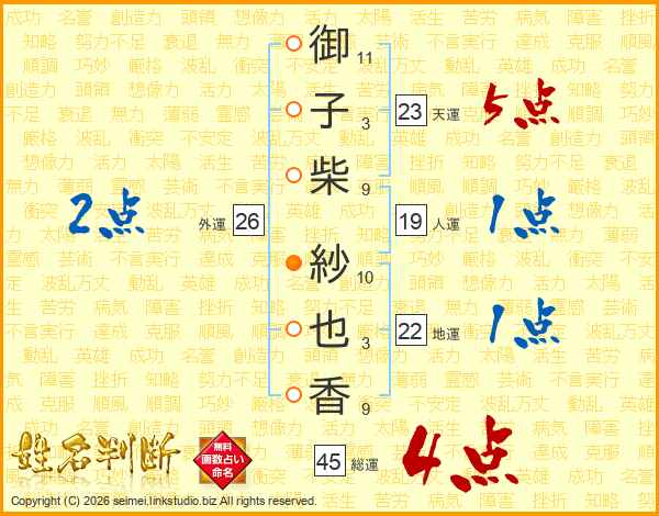 御子柴紗也香さんの外運は26画の2点!