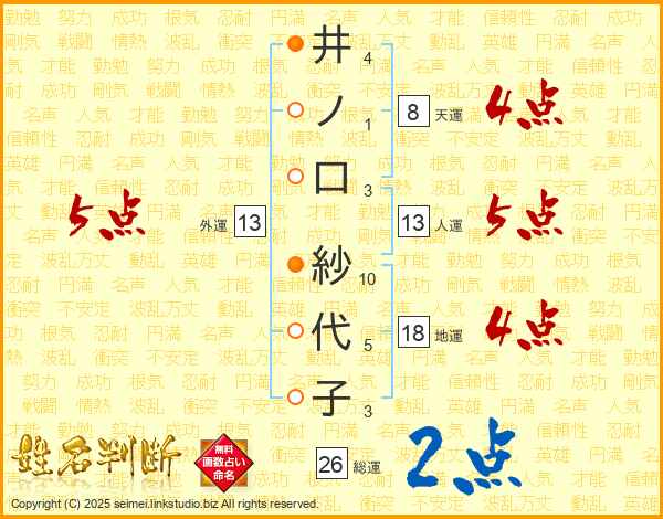 井ノ口紗代子さんの人運は13画の5点!