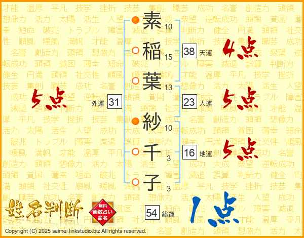 素稲葉紗千子さんの外運は31画の5点!