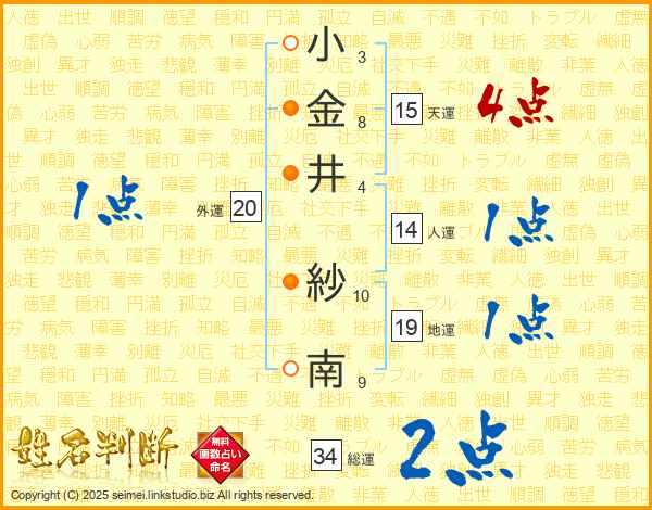 小(3画)金(8画)井(4画) 紗(10画)南(9画)