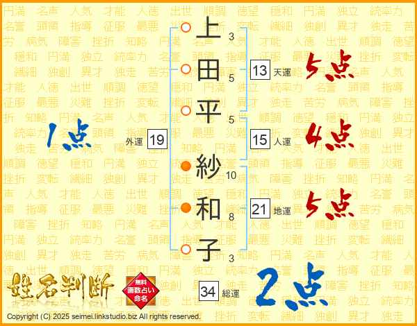 上田平紗和子さんの総運は34画の2点!