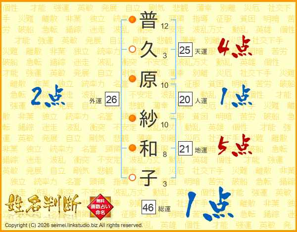 普久原紗和子さんの外運は26画の2点!