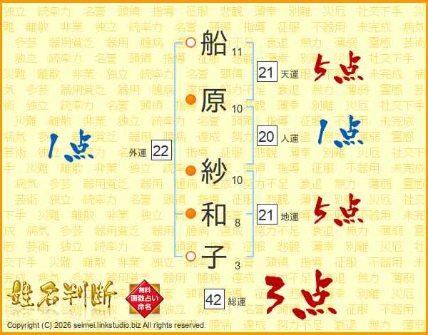 船(11画)原(10画) 紗(10画)和(8画)子(3画)